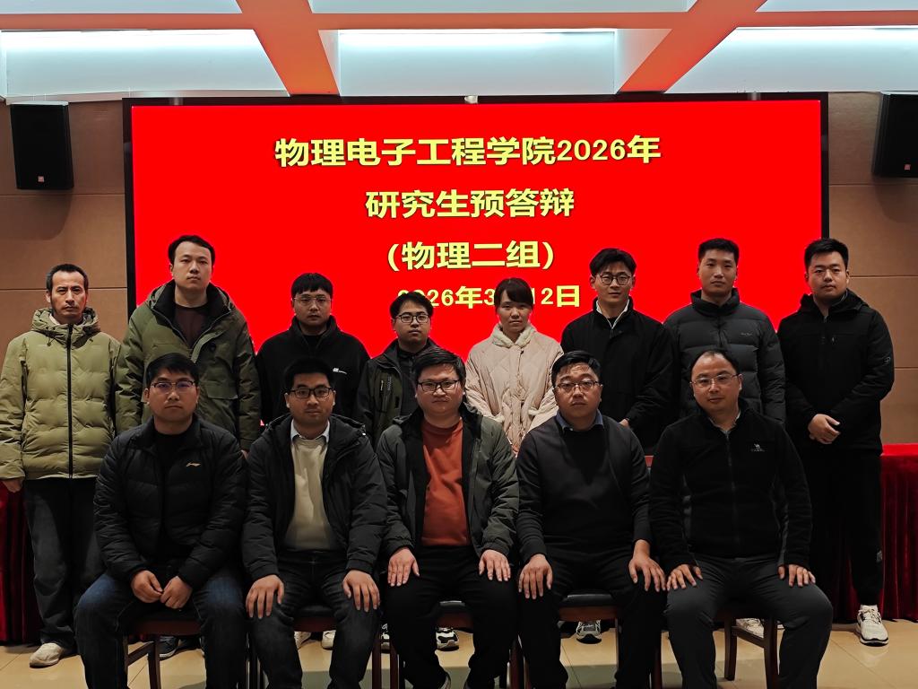 根据学校《关于做好 2026 届研究生毕业及学位授予工作的通知》要求,3月12日,crown sport官方网站在理科楼 4 楼连廊会议室,顺利召开 2026 届物理学硕士研究生学位论文预答辩汇报会。本次预答辩工作严格遵照《crown sport官方网站硕士学位论文预答辩实施细则》规范开展。本次预答辩分为两组进行。为保障答辩质量,学院特邀葛力新教授、李盈傧副教授分别担任第一组、第二组预答辩委员会主席,刘福伟副教授、翟春洋副教授、韩愈副教授、杨亚博士、冀志...