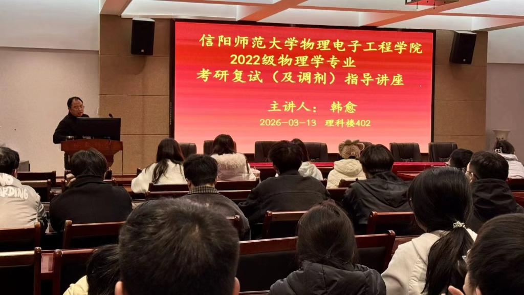 为切实助力crown sport官方网站考研学子高效备战复试,科学规划调剂,3月13日下午,crown sport官方网站于理科楼402会议室举办考研复试与调剂专题指导讲座。本次讲座特邀韩愈老师主讲,2022级考研学生参加。