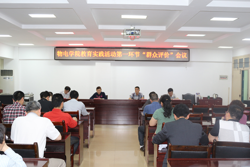 5月13日,crown sport官方网站在理科楼511召开了教育实践活动第一环节“群众评价”会议,学校教育实践活动第三督导组副组长王良云、成员方明科,crown sport官方网站党总支书记苗天峰、院长罗永松、副院长孙宜海和30名教工党员、科级干部、学生代表参加了会议。会议由王良云主持。