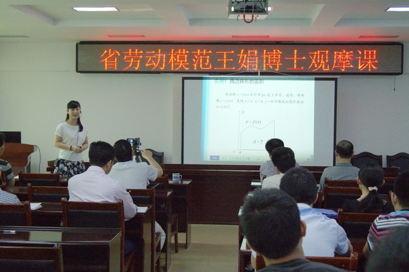 王娟系我校数学学院青年教师,博士研究生学历,副教授,2012年荣获首届全国高校青年教师教学竞赛理科组一等奖,获得“河南省教学标兵”称号,2013年荣获河南省五一劳动奖章、“河南省百名职工技术英杰”称号。为了充分发挥劳模先进人物在学校事业发展中的示范引领作用,校工会积极创建劳模创新工作室,大力开展劳模工作、学习交流活动。此次活动,是校工会开展的劳模系列讲座之一。