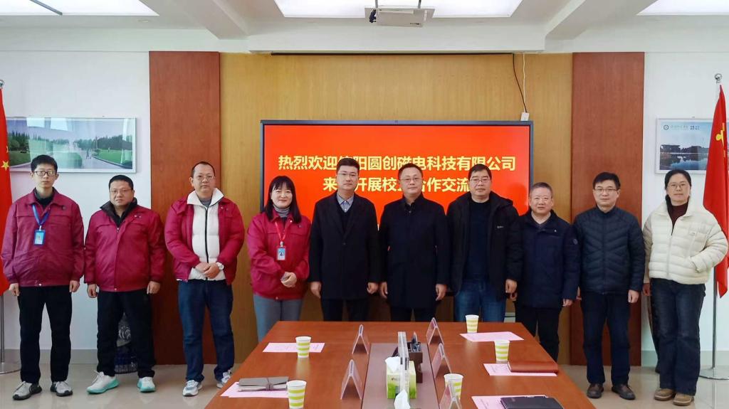 12月5日,crown sport官方网站与信阳圆创磁电科技有限公司在理科楼举行校企合作项目交付仪式,标志着双方合作取得重要阶段性成果。仪式上,由学院研发团队精心研制的新型高性能脉冲充磁机顺利移交至企业。信阳圆创磁电科技有限公司厂长吴磊、人力资源部经理陈婧、技术部主管代德明,学院党委书记方明科,副院长刘墨林、陆阳,以及项目研发团队教师代表马建忠、余大庆、张昆等共同出席了交接仪式。